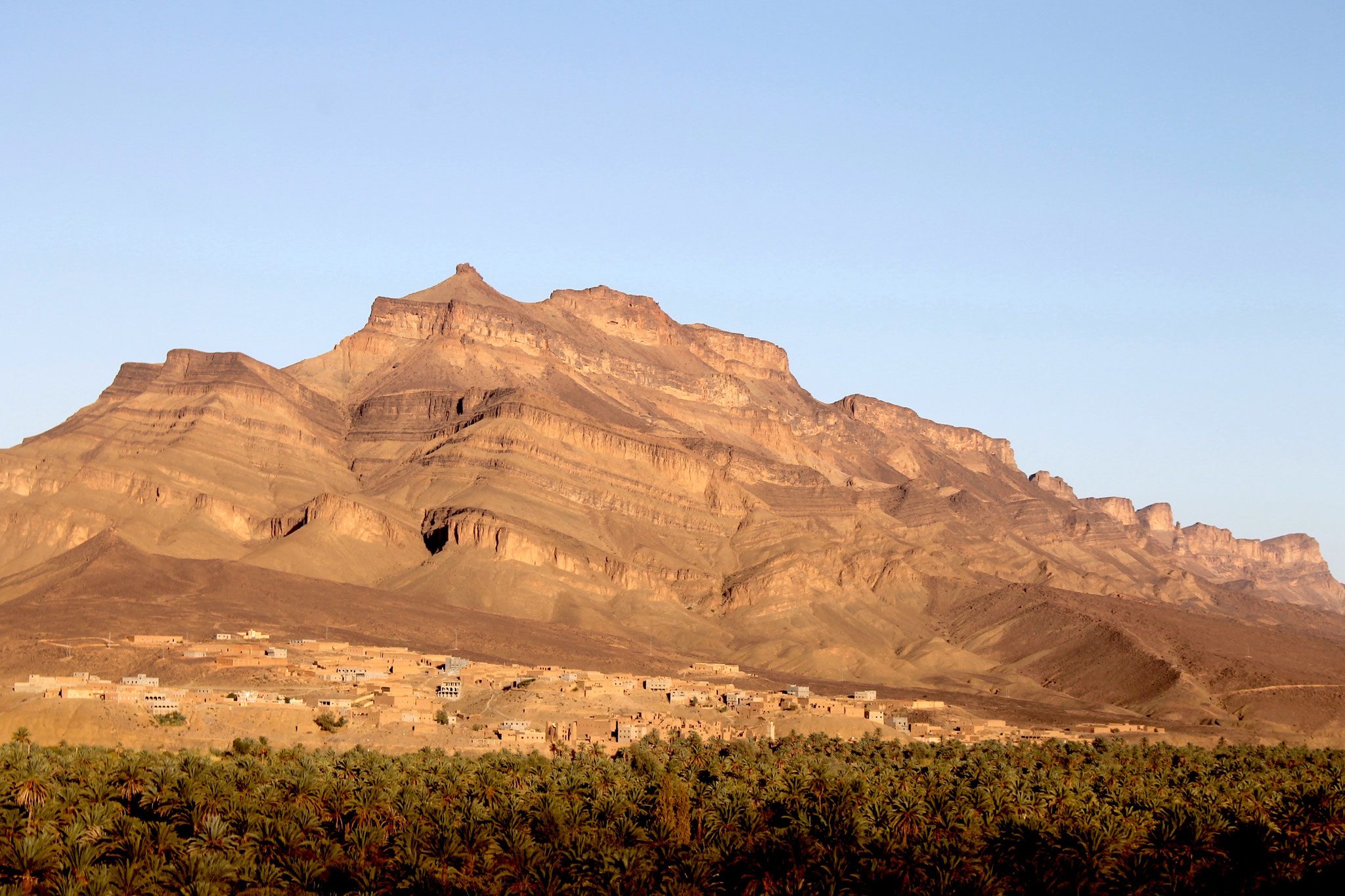 Draa-Tal, durch die herrlichen Anti-Atlas-Berge. Wir verbringen unsere erste Nacht in einem schönen, typischen Riad in Agdez. -/-/A