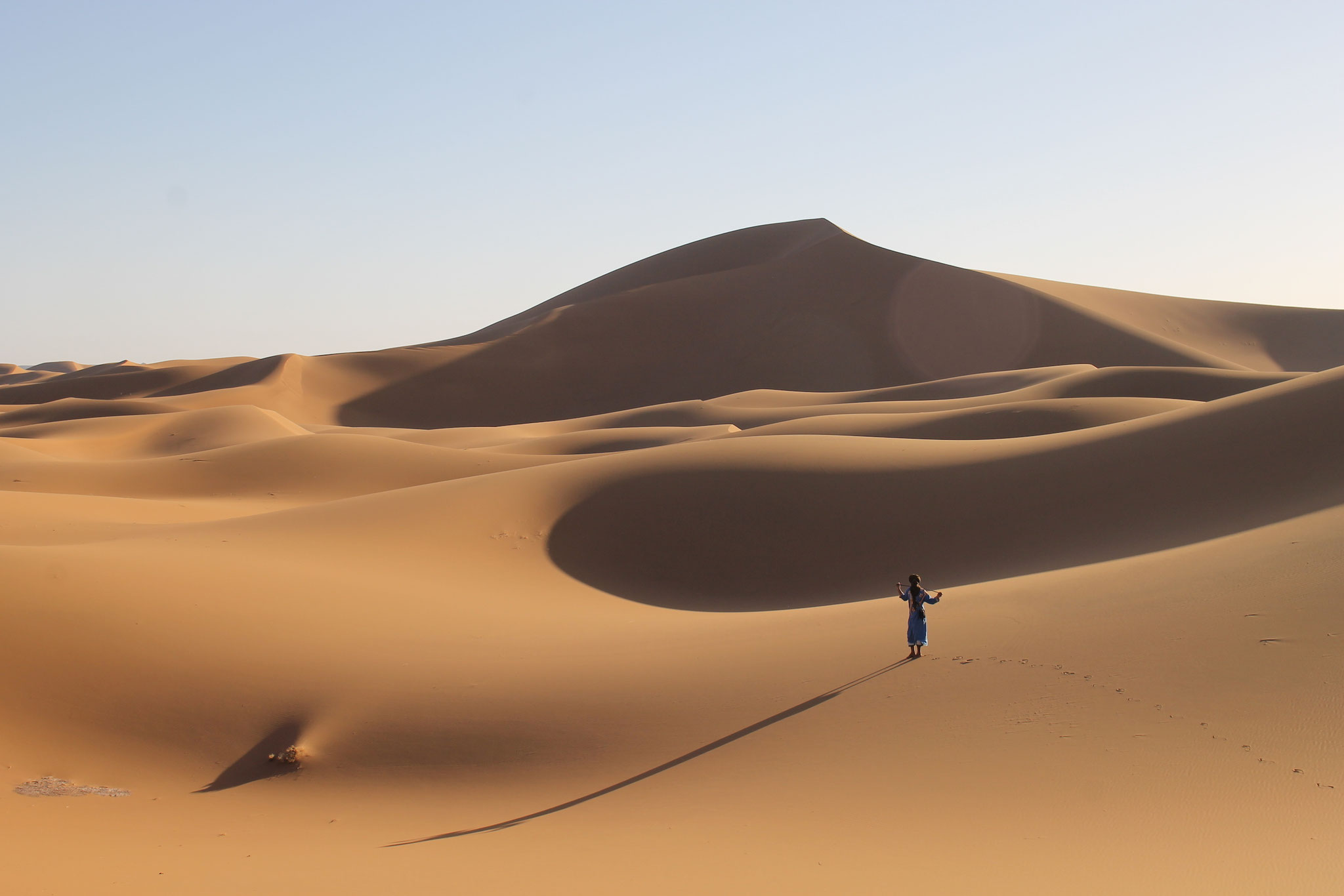 The journey begins in the morning driving straight into the true huge Sahara. First, we drive in a 4WD vehicle from the little town of Mhamid along small dunes. After 2 hours driving, we reach the big dunes of Zzahar. Set up our camp, cook your delicious lunch. Later, the rest of the day is yours since the dunes are just at your feet. A beautiful large group of golden dunes stretching to the horizon. Experience a new dimension of tranquility and serenity during the sunset on the high dunes of Erg Zzahar. In the evening, we meet at the camp fire for dinner. Overnight in your small camp/tent. -/L/D