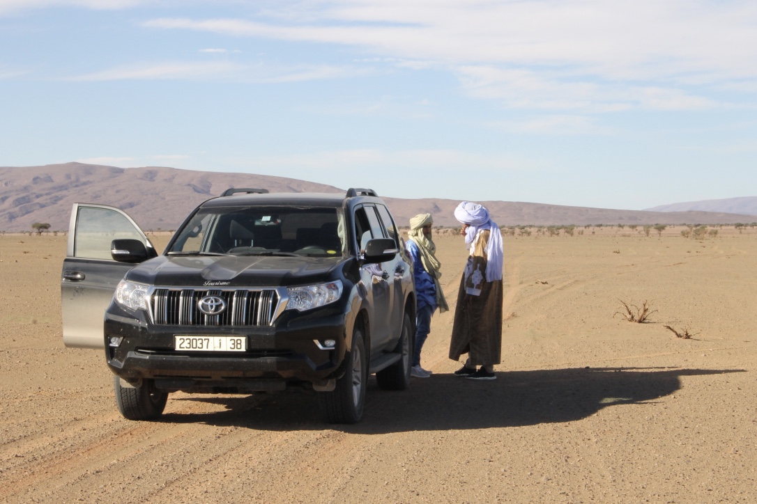 Departure in the morning after breakfast, we start our day by car along the old track of the Paris-Dakar rally, through the dried up salty lake of Iriqui. We stop in a very old fossil place leaving the desert and sand dunes behind. Lunch in Tazenakht, a famous Berber carpet town. Return to Marrakesh via the high Atlas mountains towards evening. B/-/-